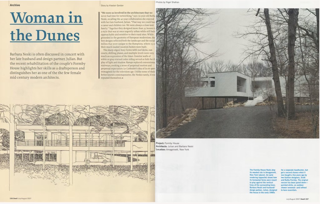 It is ironic that one of the criteria long used to evaluate innovative private houses is their inclusion in the archive of Architectural Record Houses issues. The September 2024 issue featured a powerful essay by Suzanne Stephens on the current extreme threats to Hamptons modern architecture and the crucial need for strong preservation measures. Seven Neski Houses were Architectural Record Houses, five of which survive today in the Hamptons. Advocacy that expands exposure to their work and Barbara Neski’s provocative perspectives could inspire new generations of architects and clients. It can present compelling reasons to legislate for preservation measures on the east end before this modern heritage is lost to demolition, available only in print.